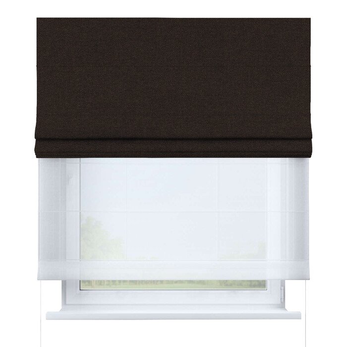 Римская штора день-ночь блэкаут однотонный тёмно-коричневый, карниз верёвочный